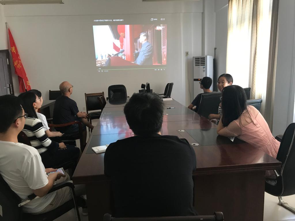 10月1日上午10时,学校在孔明路校区第一会议室主会场组织全体校领导和中层干部100多人收听收看“庆祝中华人民共和国成立70周年大会”盛况,与此同时,全校31个党总支、直属党支部和团委分别设立分会场组织教师、学生集中收听收看习近平总书记在庆祝中华人民共和国成立70周年大会上的讲话和阅兵式、分列式。