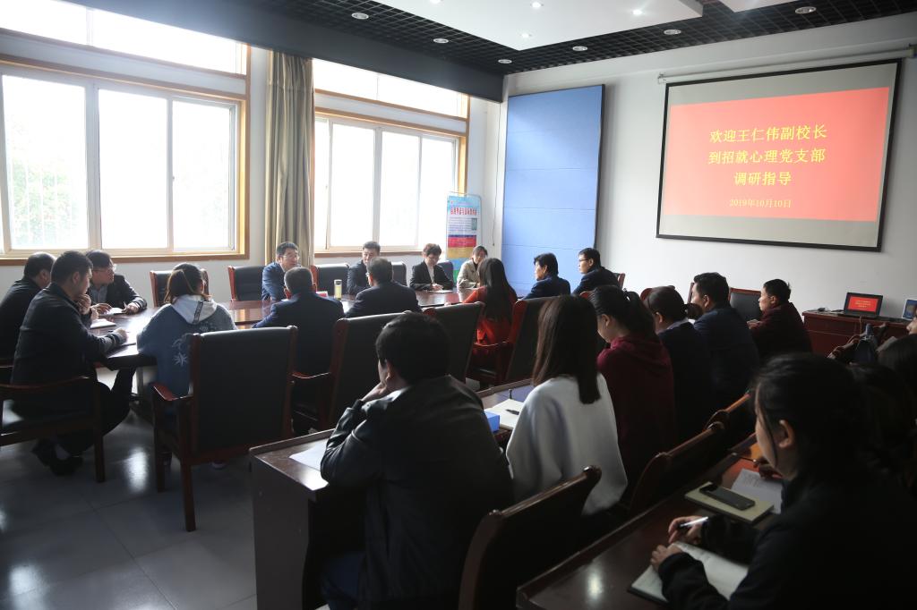 10月10日上午,副校长王仁伟到招就心理党支部调研指导“不忘初心、牢记使命”主题教育。