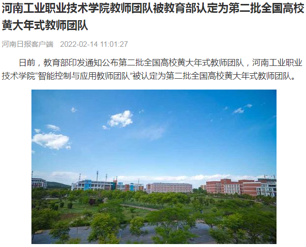 日前,教育部印发通知公布第二批全国高校黄大年式教师团队,beat365“智能控制与应用教师团队”被认定为第二批全国高校黄大年式教师团队。近日,中华网、河南日报、河南高校资讯网、国际在线、中华高校网等媒体报道了“智能控制与应用教师团队”聚焦军民融合发展战略、乡村振兴战略、南水北调工程,以技术创新服务区域经济发展,以科学研究反哺教育教学,在师德师风、教育教学、科研创新、就业创业、社会服务等方面取得的突出成绩。(素材来源/智能控制与应用教师团队 汇编/刘天恒 单位审核/杨俊峰 编审/杨爽)