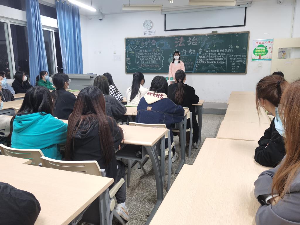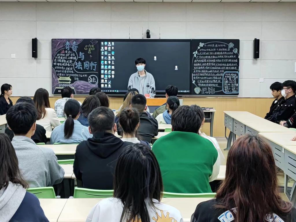 在本次法治教育主题团日活动中,全校各班级团支部积极响应号召,充分利用网络、新媒体平台、黑板报、展板、海报等形式,选择典型案例,以案释法,采取线上线下相结合的方式。班主任老师深入班级指导,学生干部积极主动策划活动环节,创新活动形式,通过观看视频、主题宣讲、法治演讲、互动讨论、知识抢答等形式,普及网络安全法、个人信息保护法、数据安全法、交通安全法等法律,结合大学生日常学习生活,将法治教育与健康教育、安全自护教育相融合,切实提高广大同学的法治意识。