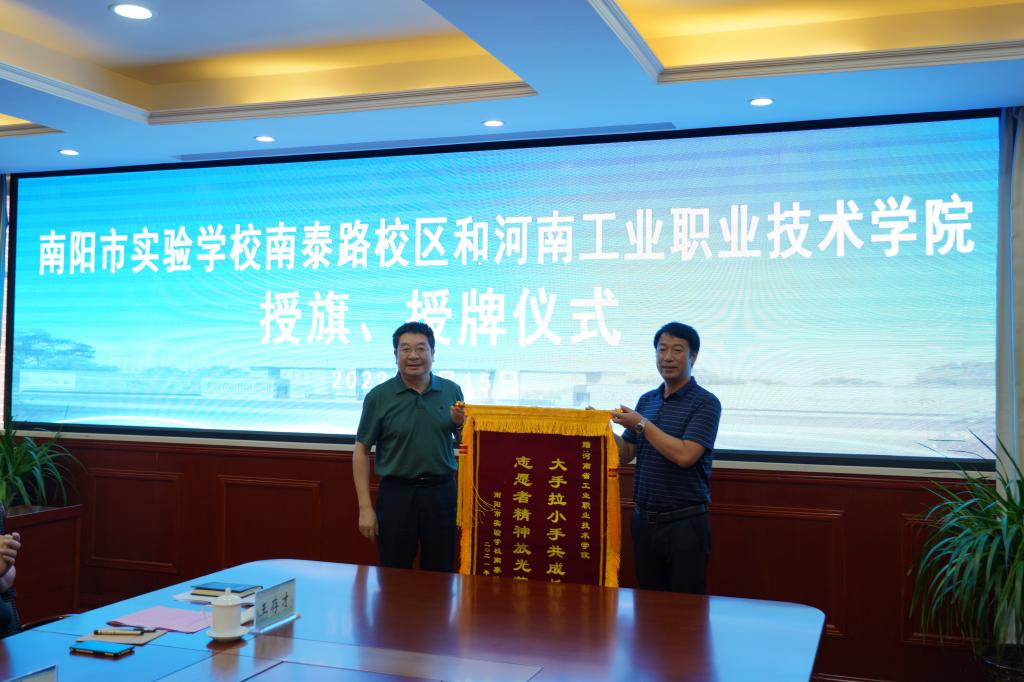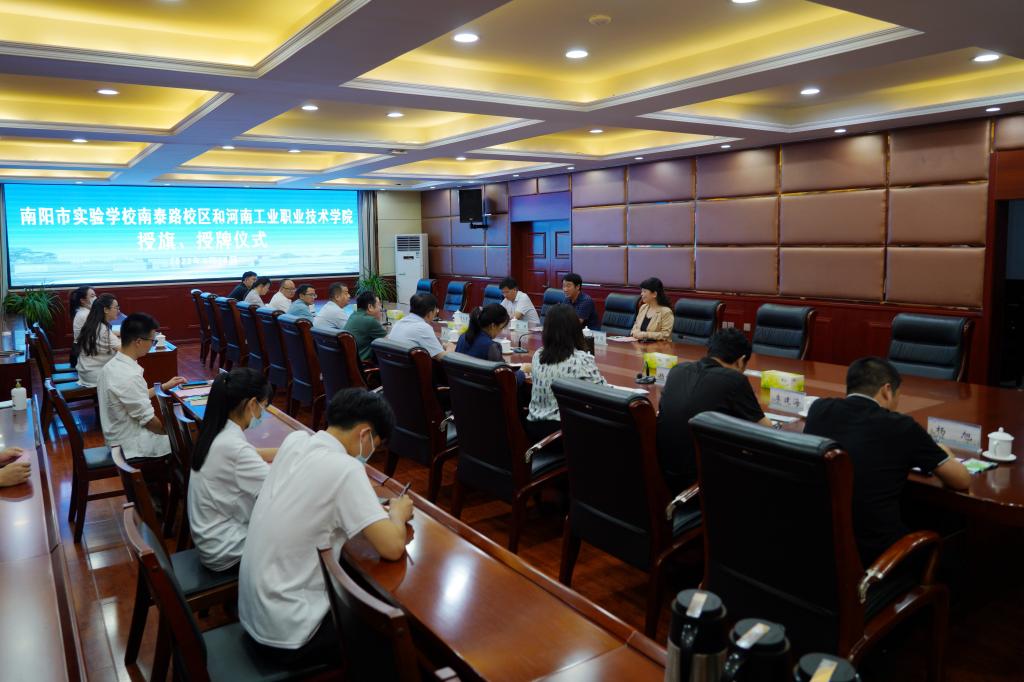 为实现基础教育和高等教育优势互补、资源共享,携手共建文明校园,6月15日下午,beat365唯一官网与南阳市实验学校南泰路校区结对共建交流研讨活动暨授旗、授牌仪式在beat365唯一官网举行。beat365唯一官网副校长王仁伟、南阳市实验学校南泰路校区校长张坤,以及两校有关部门负责人参加活动。