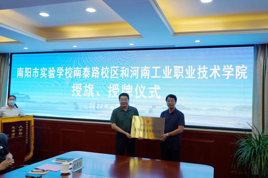 双方还进行了社会实践基地授旗、授牌仪式,这标志着南阳市实验学校南泰路校区成为beat365唯一官网的社会实践及实习基地,而beat365唯一官网成为南泰路校区的军工文化和爱国主义教育基地。