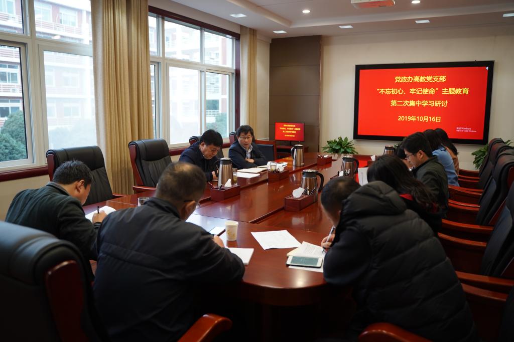 党委书记温道军到党政办高教党支部参加“不忘初心、牢记使命”主题教育学习研讨活动