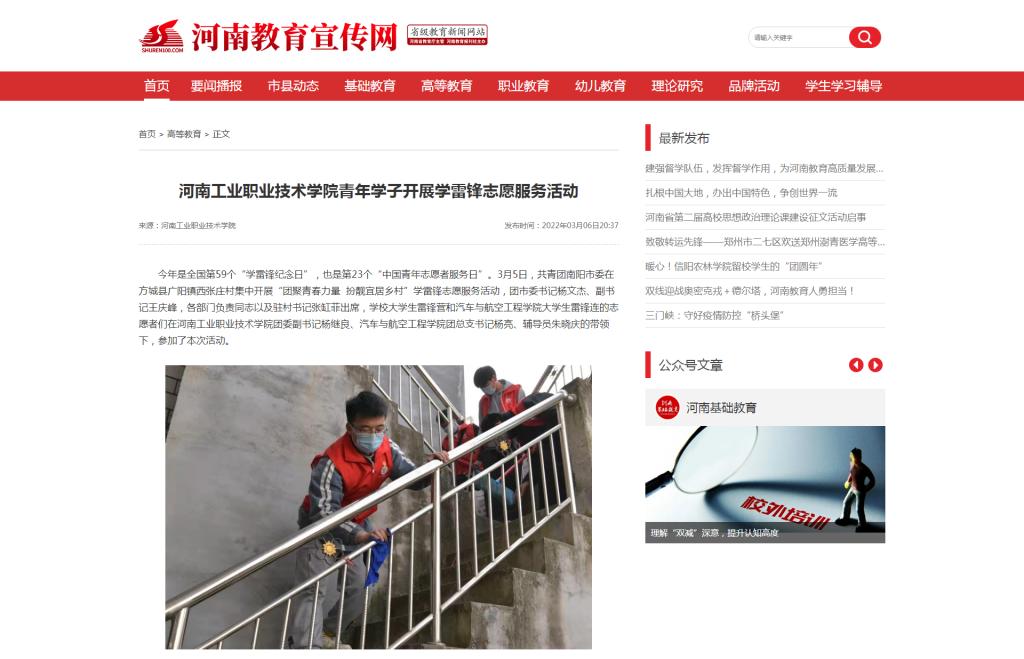 河南教育信息网、南阳日报:团聚青春力量 扮靓宜居乡村——beat365唯一官网青年学子开展学雷锋志愿服务活动