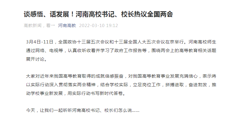 河南省教育厅:我省教育系统干部师生热议全国“两会”胜利召开 • 校长谈