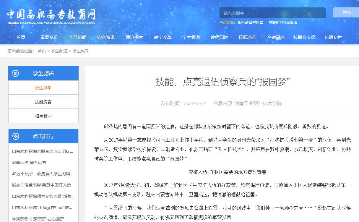 【双高建设典型案例】中国高职高专网:技能,点亮退伍侦察兵的“报国梦”
