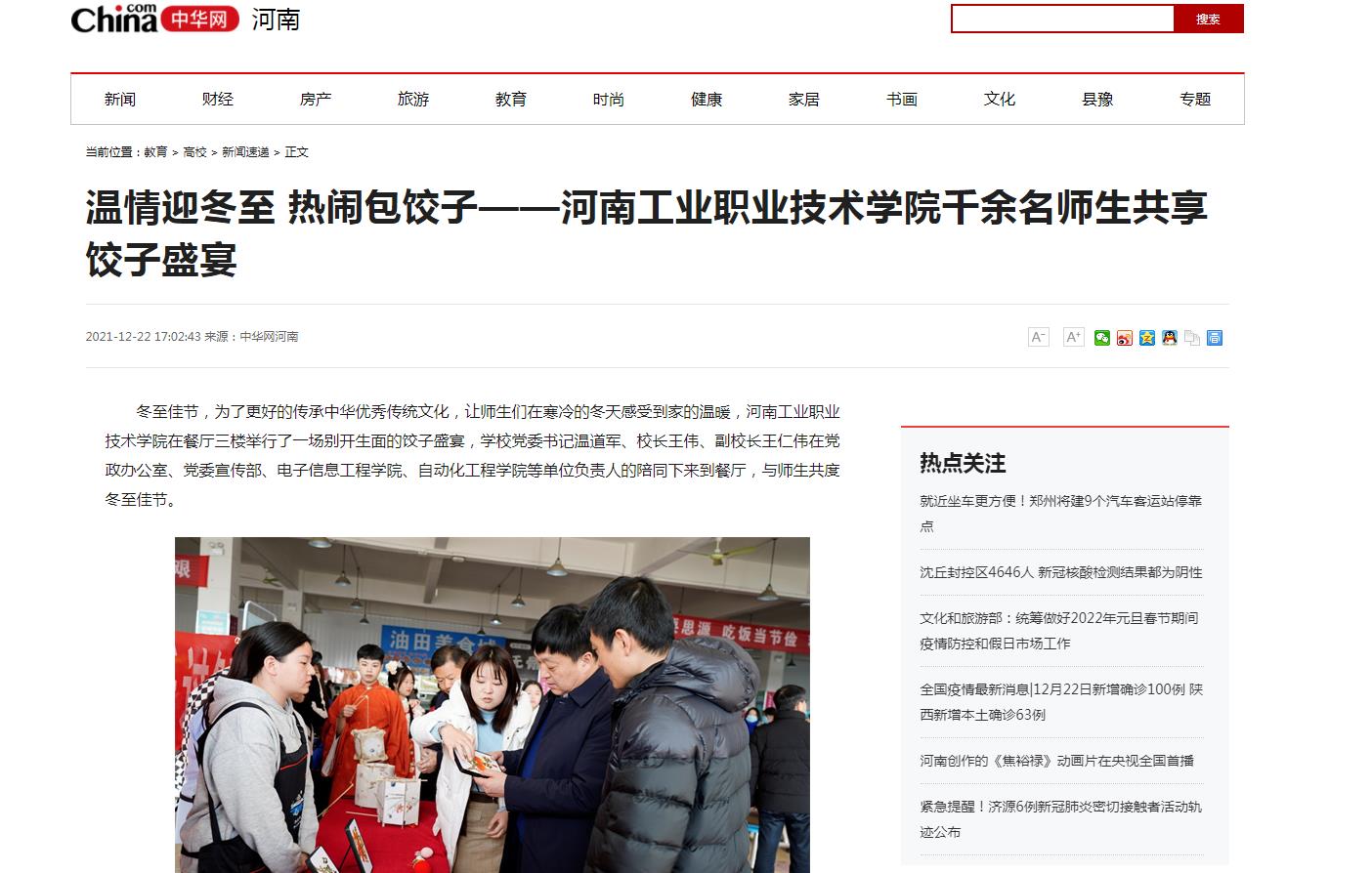 中华网、中华高校网、河南高校资讯网、河南高校行、中原经济网等媒体报道beat365温情迎冬至 热闹包饺子——千余名师生共享饺子盛宴活动