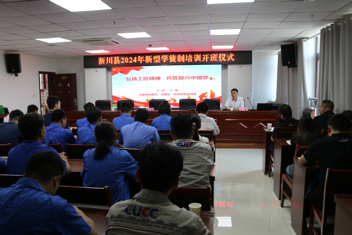 6月14日上午,学校承办的淅川县2024年企业新型学徒制联合培训班在淅川县政务服务中心举行开班式。淅川县人社局副局长侯卓,科工信局副局长全沛源,先进制造业开发区副主任常国范,学校继续教育学院相关领导出席开班式,来自福森药业有限公司、淅减汽车减振器有限公司、大丹江科技股份公司、淅川水泥有限公司、淅川县粉末冶金有限公司和南阳金博减震科技有限公司的企业代表、部分学员共计100余人参加。开班式由侯卓主持。
