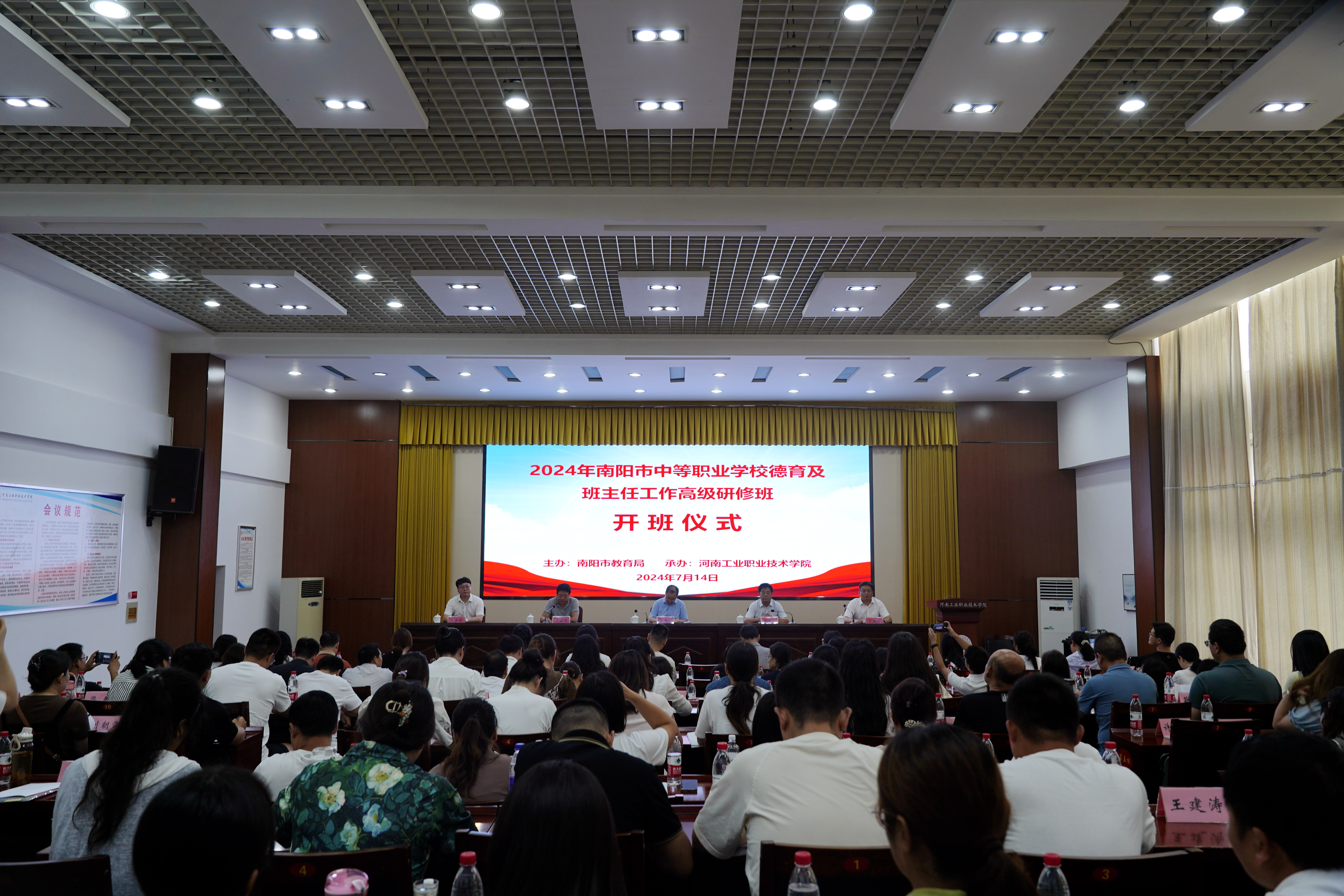 为深化职业教育领域“三全育人”改革,落实立德树人根本任务,提升南阳市中职班主任队伍专业素养,提高中职学校德育工作水平,7月14日,南阳市教育局和beat365联合举办的全市中职德育与班主任工作研修培训开班仪式在孔明路校区举行。南阳市教育局二级调研员、党组成员、副局长贺晨辉出席会议并讲话,beat365副校长贾庆成致辞,继续教育学院党支部书记、院长丁延松宣读了培训纪律要求,开班式由市教育局职成教科科长王盛超主持,来自全市30所中职学校的117名教师参加了开班仪式。