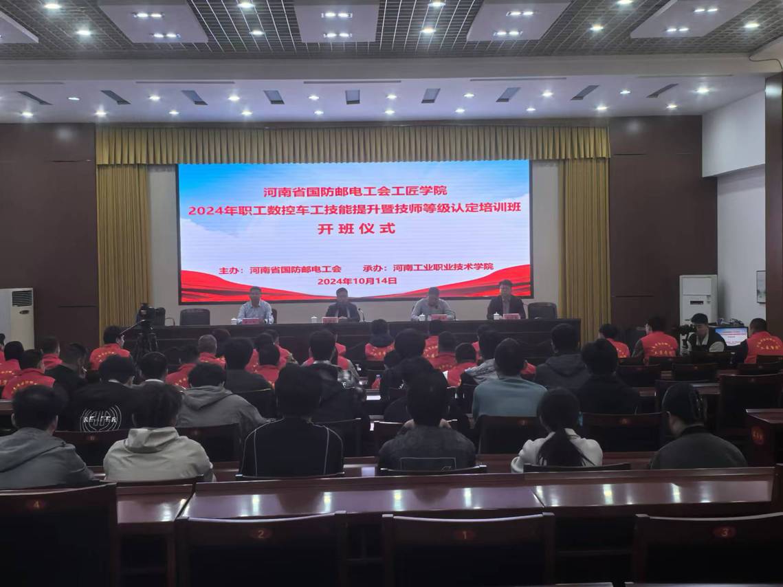 10月14日至19日,河南省国防邮电工会工匠学院2024年职工技能提升系列培训第14期——数控车工技能提升暨技师等级认定培训在学校顺利举办,此次培训由继续教育学院和机械工程学院精心组织,共有来自省内12家军工企业的40名技术骨干参加培训。